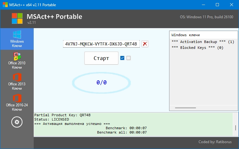 Установка ключей для Windows MSAct++ 2.11 Portable by Ratiborus