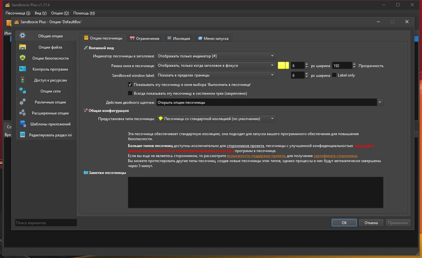 Защита компьютера Sandboxie plus 1.17.4