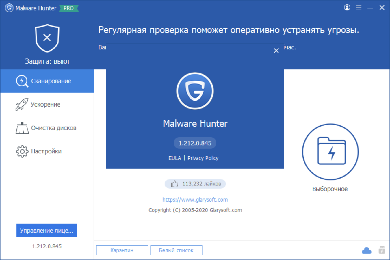 Антивирусный сканер Glary Malware Hunter Pro 1.212.0.845