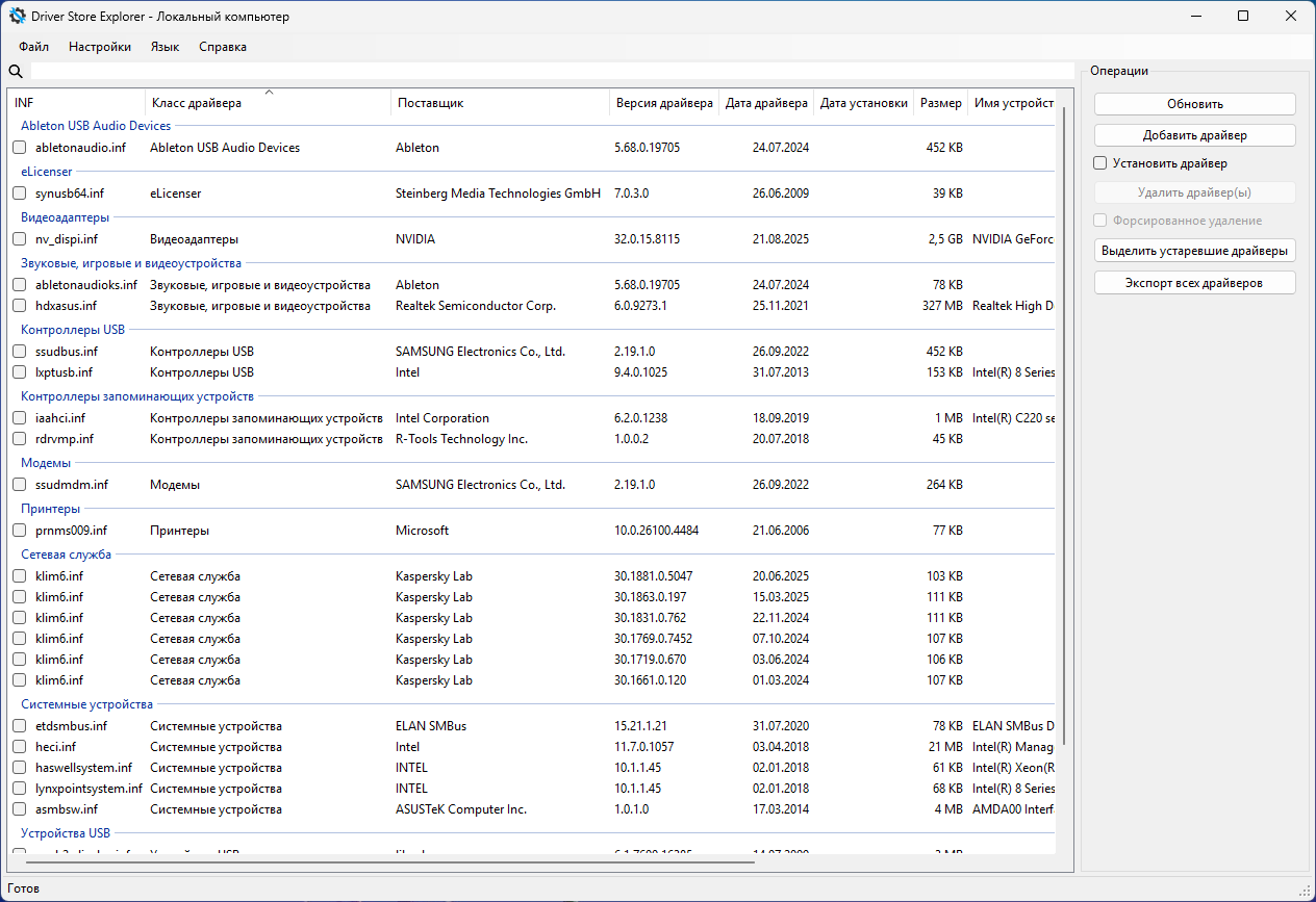 Driver Store Explorer — это легкий инструмент, который обеспечивает самый простой способ работы с хранилищем драйверов Windows. Эта небольшая программа поразительно мощна, в основном, благодаря таким операциям, как перечисление, добавление, установка, удаление и даже принудительное удаление пакетов драйверов. Это программное решение будет особенно полезно для очистки старых версий драйверов, что может освободить ценное место на системном диске.