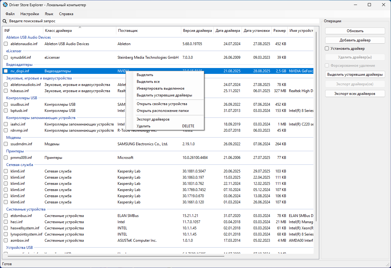 • Перечисление/вывод списка всех сторонних пакетов драйверов в хранилище драйверов. Отображение устройств, связанных с драйверами. Экспорт списка пакетов драйверов в CSV.