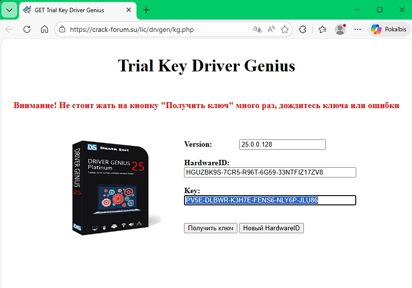 7.После получения ключа зарегистрируйте его в Driver Genius.