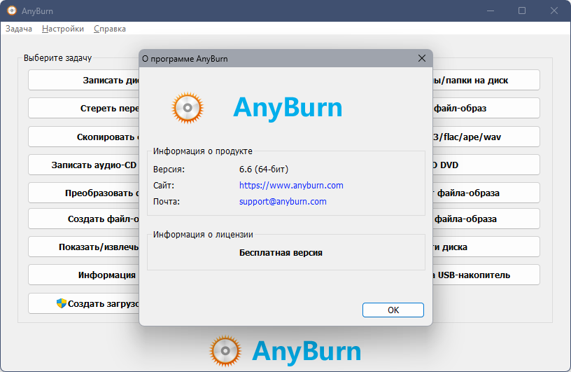 Быстрая запись дисков AnyBurn 6.6 + Portable