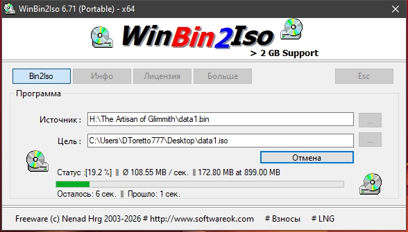 Конвертер BIN в ISO WinBin2Iso 6.71 Build 001 + Portable