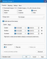 • Этот инструмент поможет установить такие атрибуты, как только для чтения, скрытый, архивный, системный и др. Кроме того, доступны изменение даты файла или папки (создание, модификация, доступ) и синхронизация с метаданными цифровых фотографий. Удобно, что поддерживается пакетный режим редактирования сразу нескольких элементов одновременно, например, изображений или видеороликов.