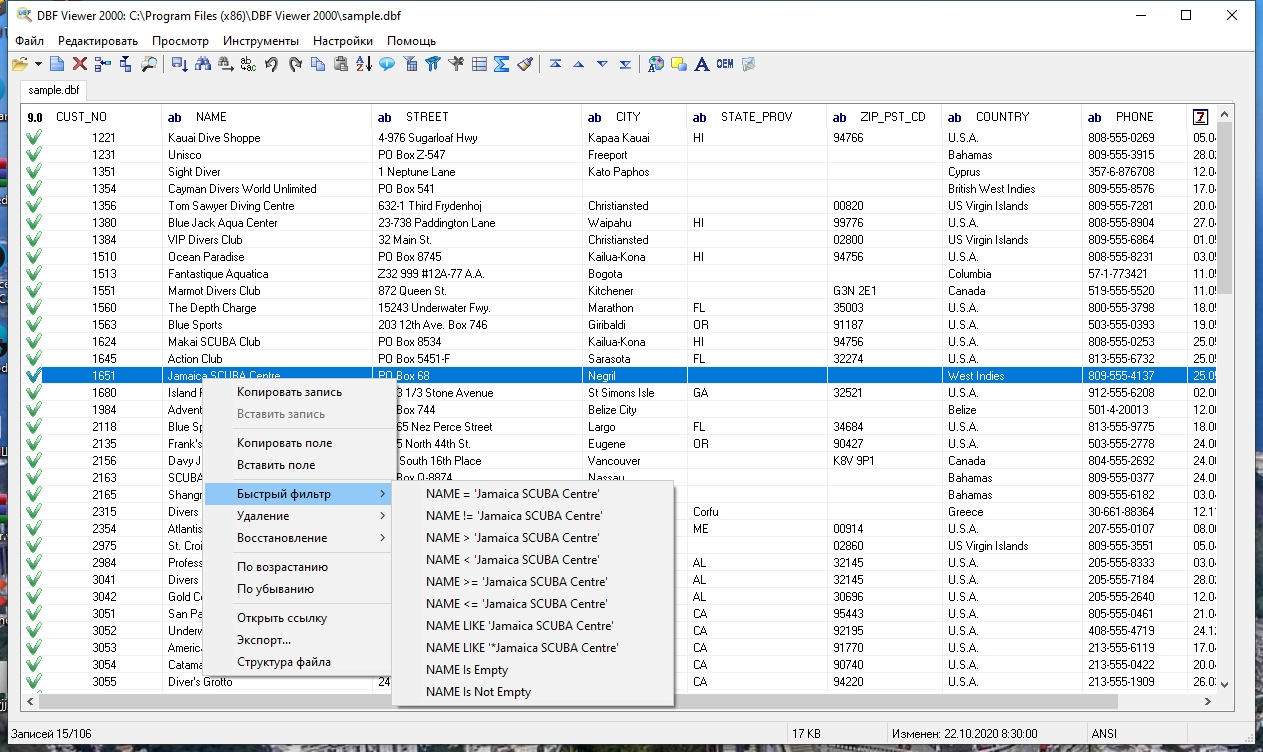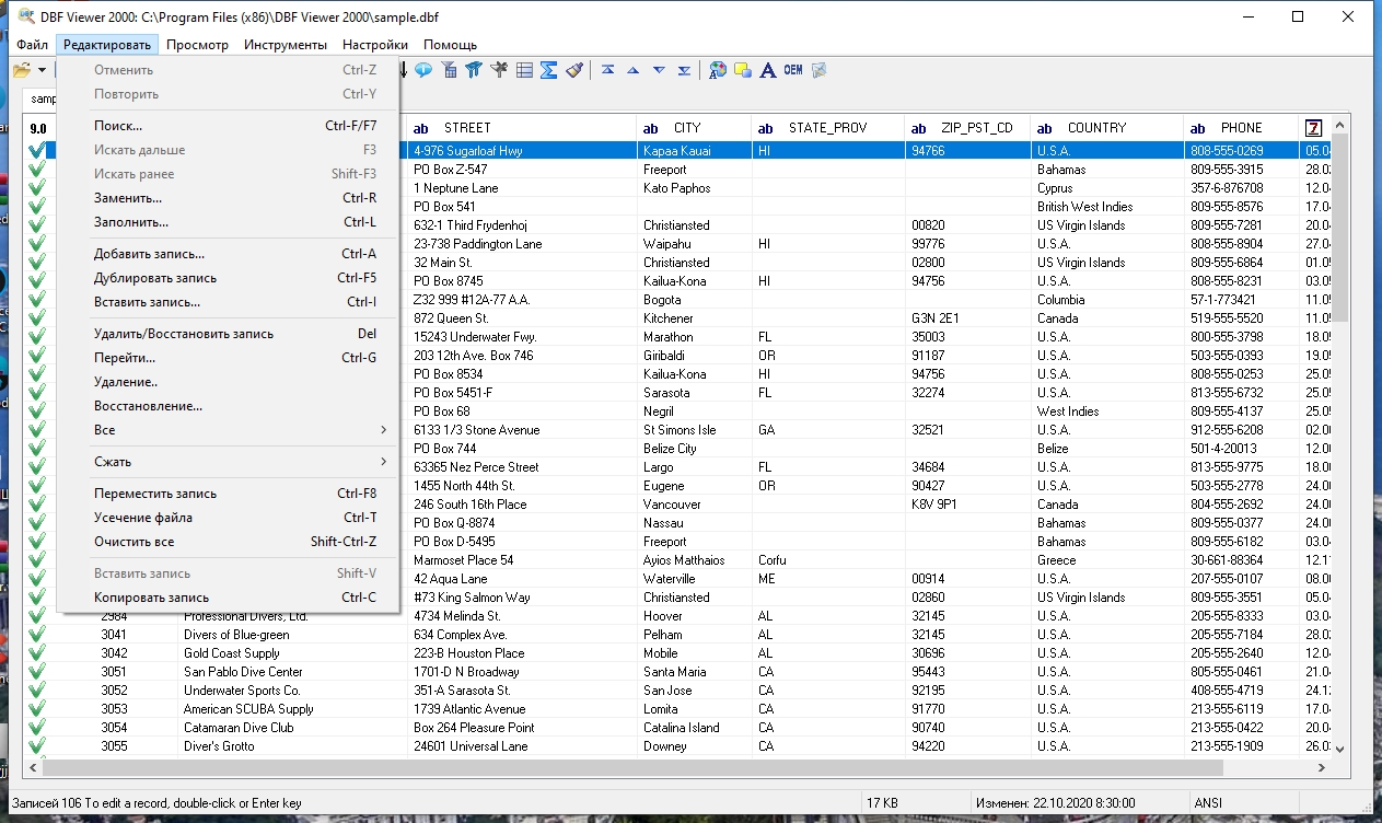 DBF Viewer 2000® - приложение для просмотра и редактирования DBF всех типов - Clipper, dBase, FoxPro, Visual FoxPro, Visual dBase.