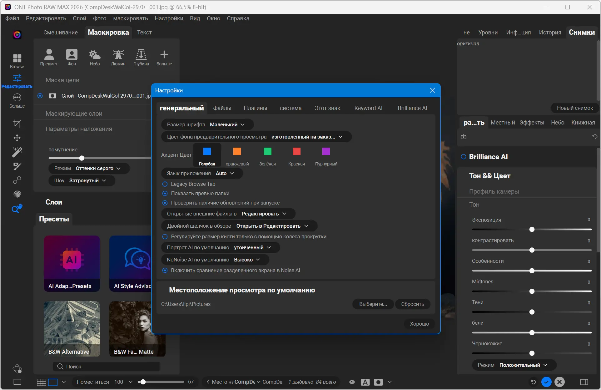 • Пакетная корректировка с помощью Brilliance AI