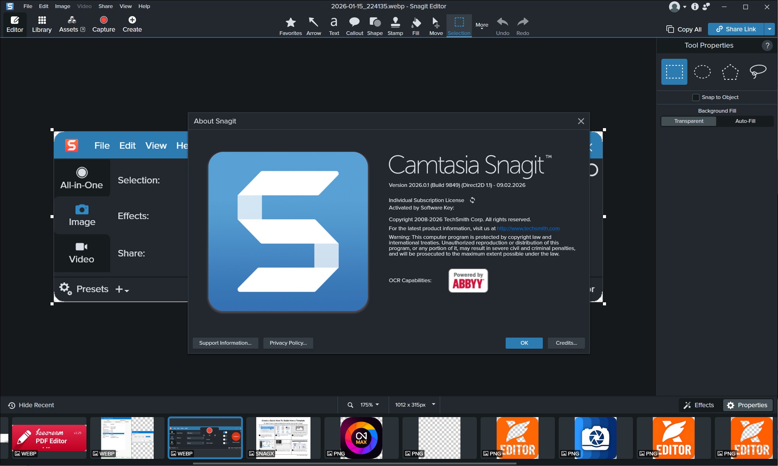 Захват экрана в скриншот TechSmith SnagIt 2026.0.1 Build 9849