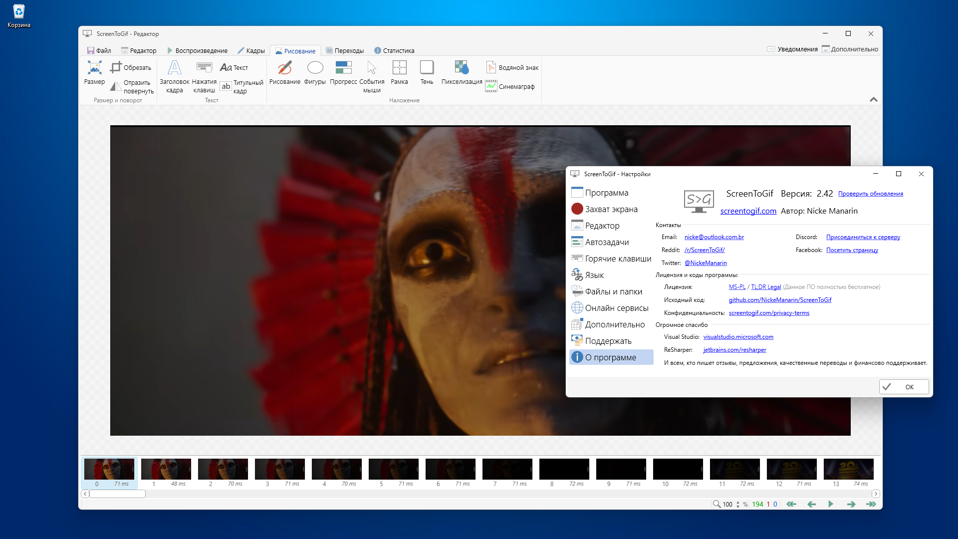 Торрент ScreenToGif 2.42 + Portable подробно: