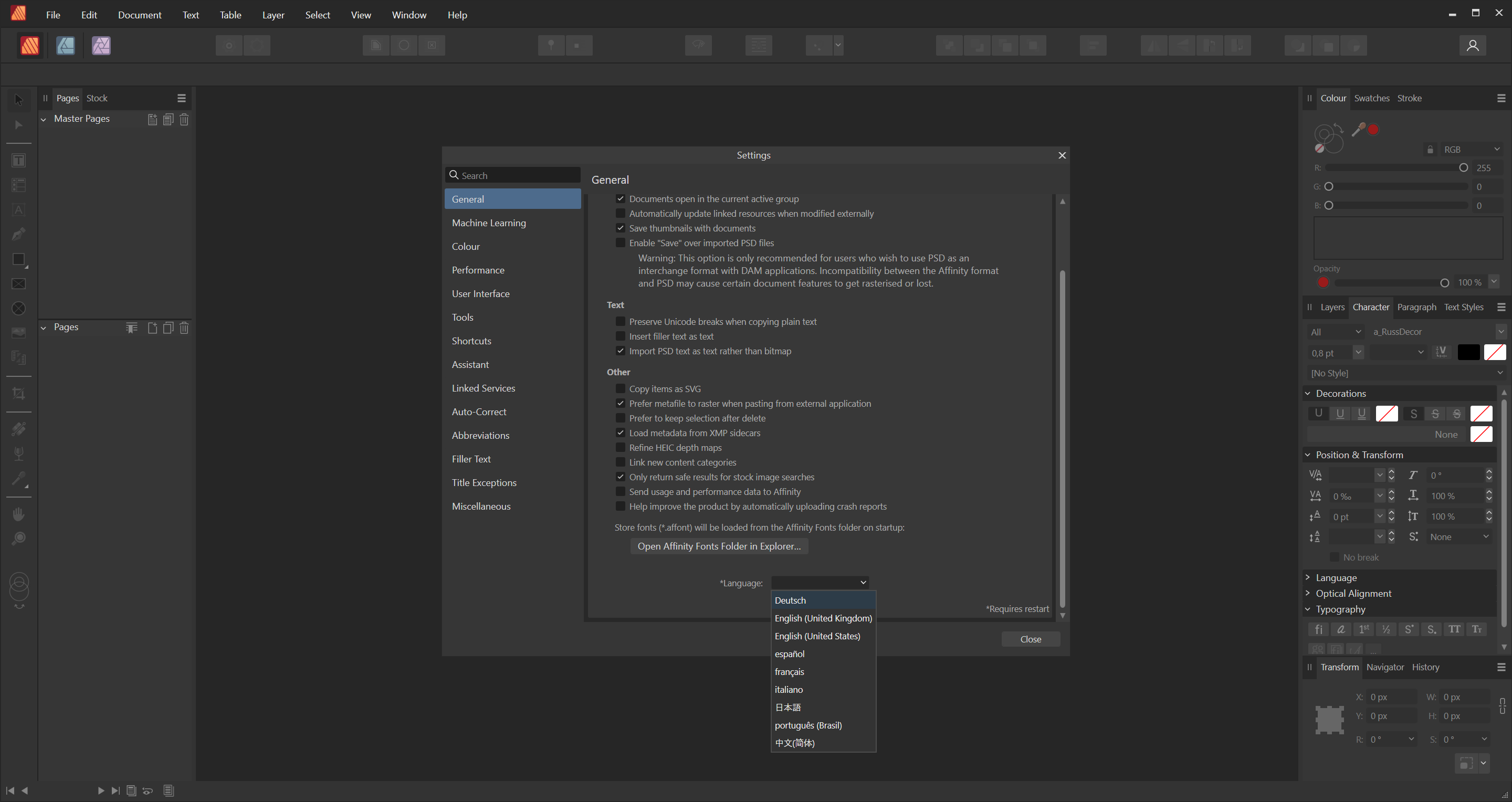 Приложение Affinity Publisher может работать с цветовыми пространствами RGB, LAB, «Оттенки серого» и CMYK, обеспечивая расширенный контроль над профессиональными цветовыми требованиями для печати.