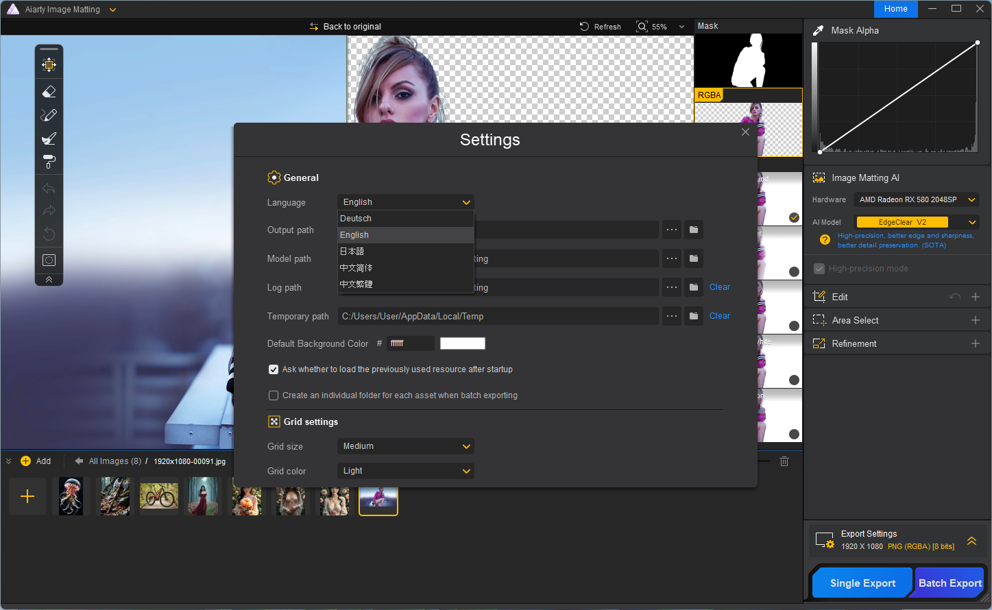 • Расширенное удаление фона с помощью ИИ : в основе AIArty Image Matting лежит способность удалять фон с чрезвычайной точностью. Программное обеспечение использует сложные алгоритмы, обученные на более чем 320 000 изображений с высоким разрешением, чтобы гарантировать, что даже самые сложные элементы, такие как полупрозрачные ткани или объекты с низким контрастом, обрабатываются с осторожностью.