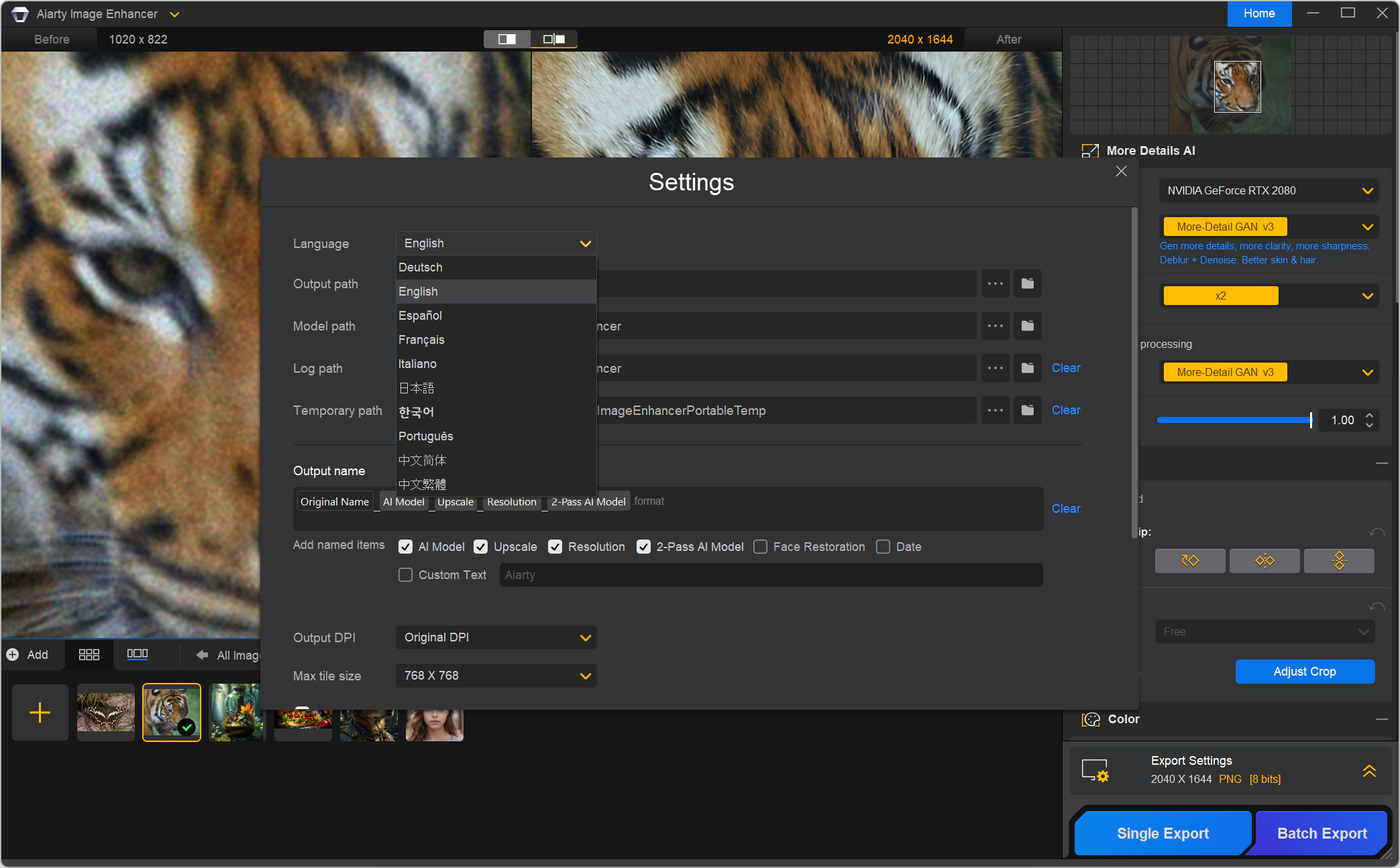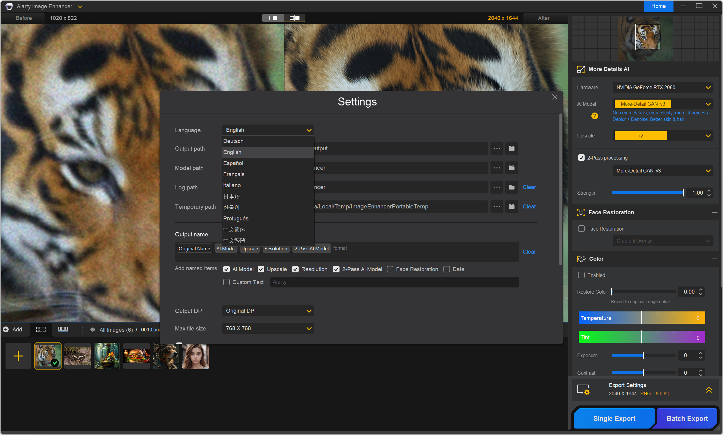 • Папка сохранения Output расположена в Aiarty Image Enhancer\Output.