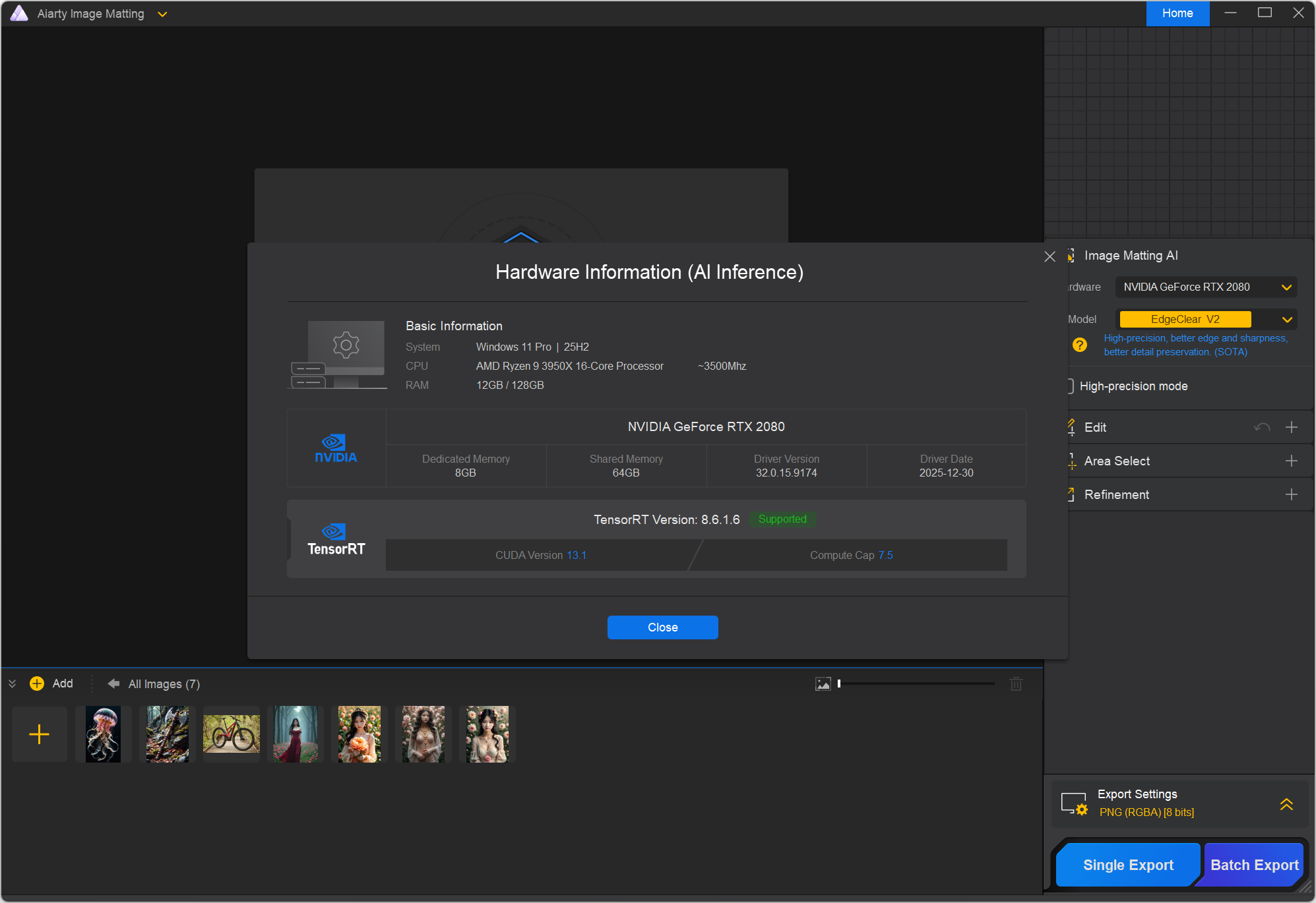 • Расширенное удаление фона с помощью ИИ : в основе AIArty Image Matting лежит способность удалять фон с чрезвычайной точностью. Программное обеспечение использует сложные алгоритмы, обученные на более чем 320 000 изображений с высоким разрешением, чтобы гарантировать, что даже самые сложные элементы, такие как полупрозрачные ткани или объекты с низким контрастом, обрабатываются с осторожностью.