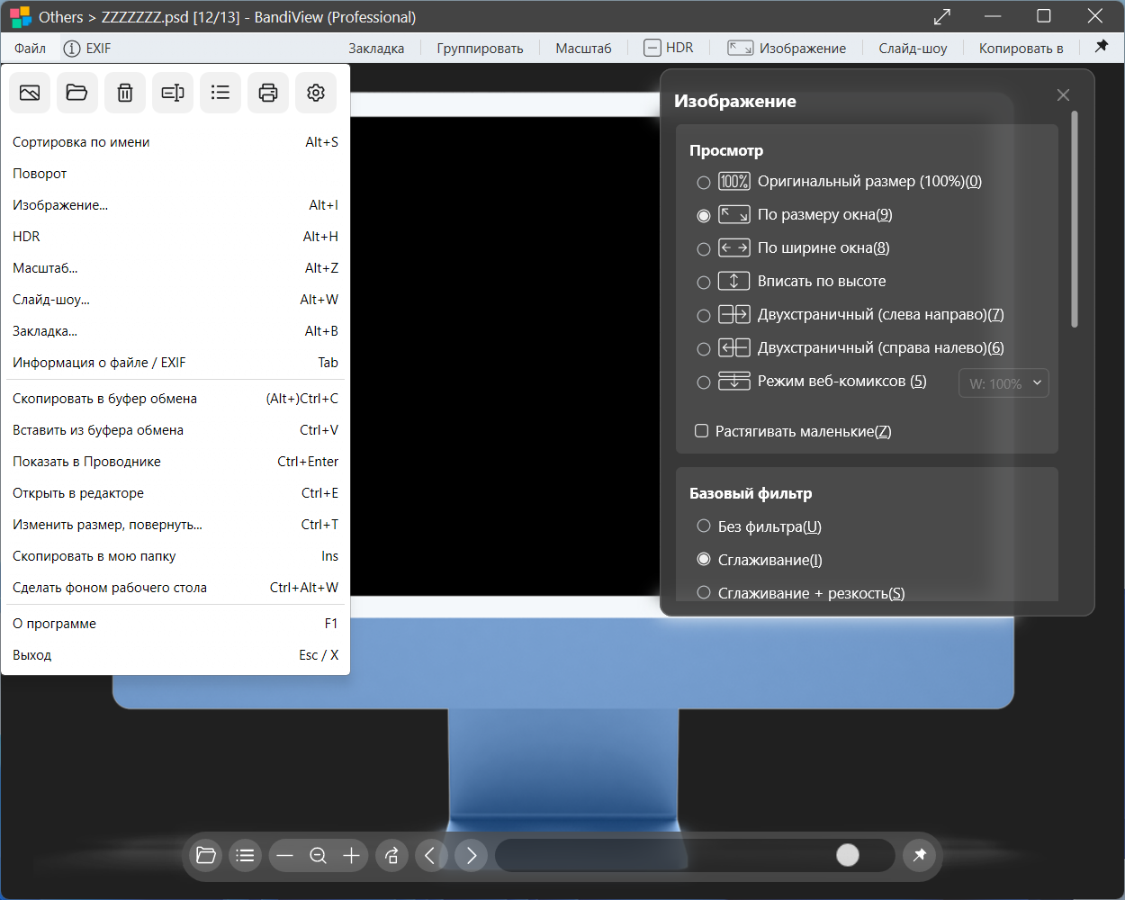 BandiView — это программа для просмотра изображений, которая является преемницей Honeyview, унаследовала все лучшие черты своей предшественницы и была дополнительно улучшена.