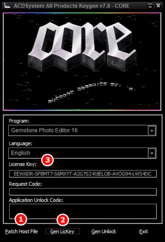 2. Скопировать файл acdsee.gemstone.16-patch.exe из папки 1 в папку установленного ПО. Пропатчить.