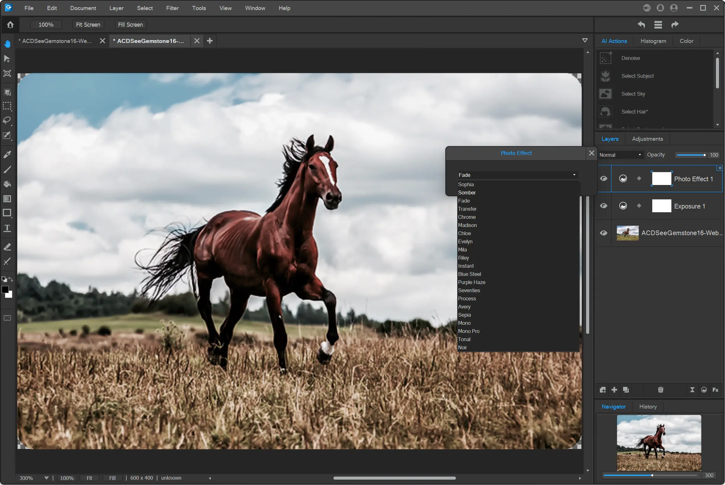 Готовы воплотить свои идеи в жизнь? С помощью искусственного интеллекта (ИИ), бесконечного количества слоёв, неразрушающего редактирования RAW-файлов и интерфейса с поддержкой нескольких документов (MDI), который работает так же быстро, как и ваши идеи, вы с лёгкостью сможете превратить свои замыслы в готовые изображения. Будь то композиция, которую вы набросали, серия художественных работ, которую вы давно хотели начать, или снимок, который вам чуть не удалось сделать, вы сможете воплотить все это в жизнь с помощью ACDSee Gemstone Photo Editor.