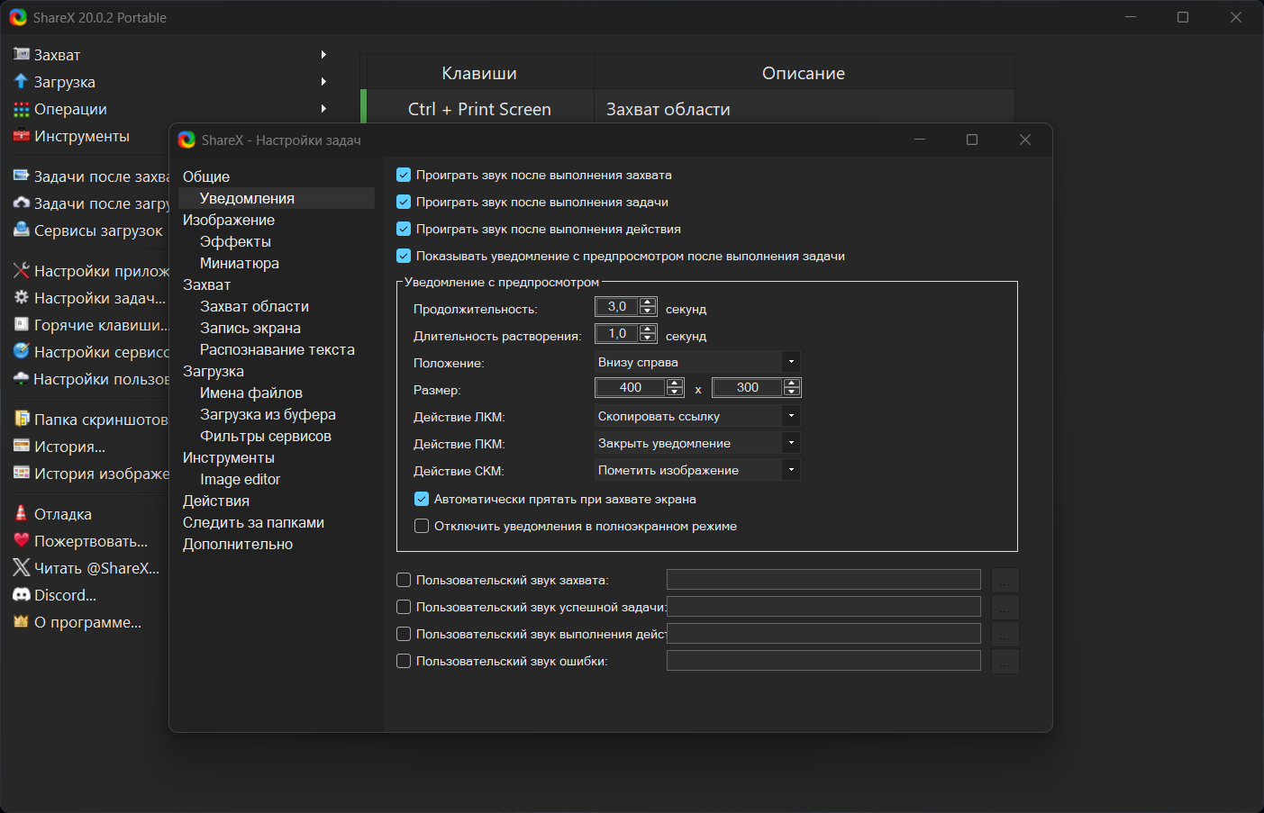 • Действительно интересная вещь о ShareX, что почти все аспекты приложения настраиваются.