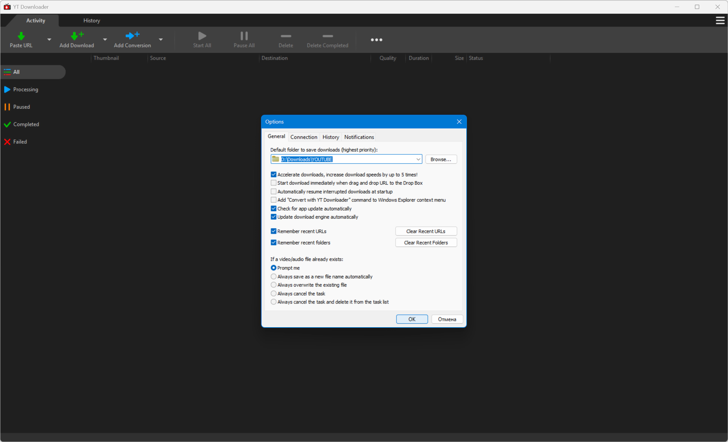 YT Downloader имеет продвинутый механизм ускорения загрузки, который позволяет загружать видео на 500% быстрее, чем обычная скорость.