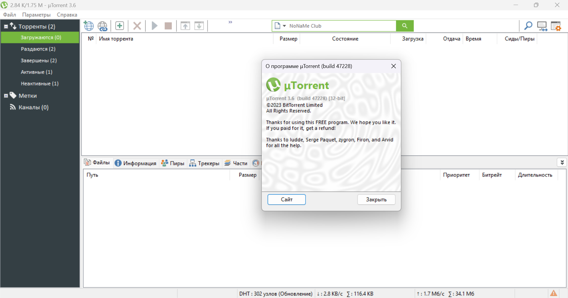 • Также есть возможность использования uTorrent в Linux при помощи Wine