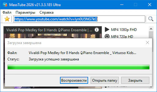 Загрузка видео с Ютуба MassTube Ultra 21.3.3.185