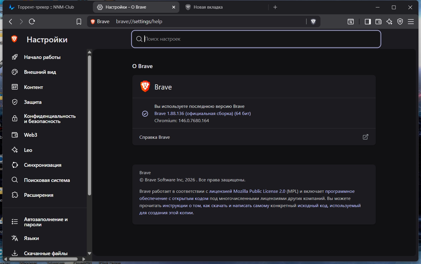 Легкий браузер без рекламы Brave Browser 1.88.136