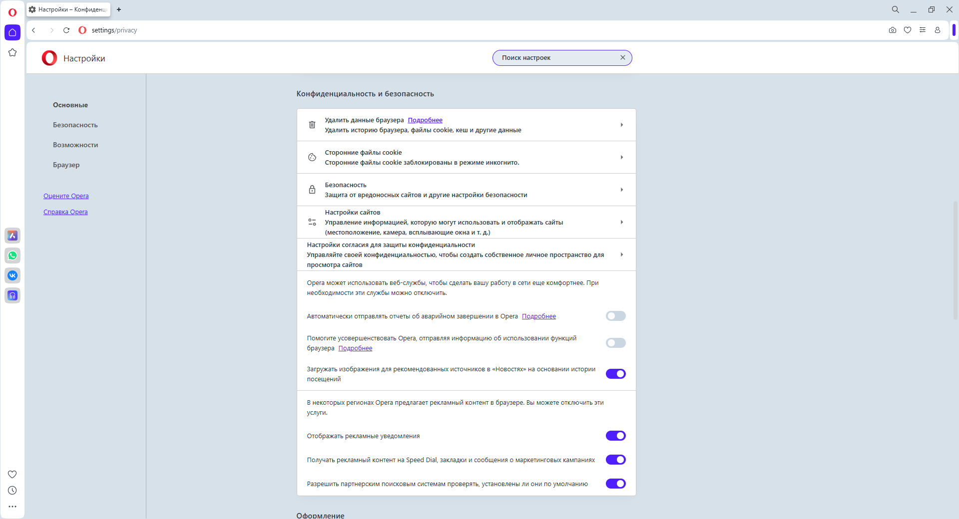 • Интерфейс Opera сочетает в себе точность и качество. Opera включает современный стиль и мощные опции, предоставляя вам полную свободу исследования просторов Интернета.