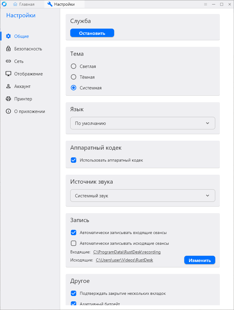 • RustDesk функционирует как сервер и клиент, используемый как удаленно, так и на локальном ПК. Для доступа к удаленному компьютеры или мобильному устройству используется идентификатор (ID) и пароль устройства. При необходимости пользователи могут изменить данные доступа.