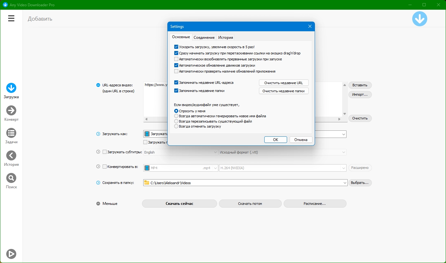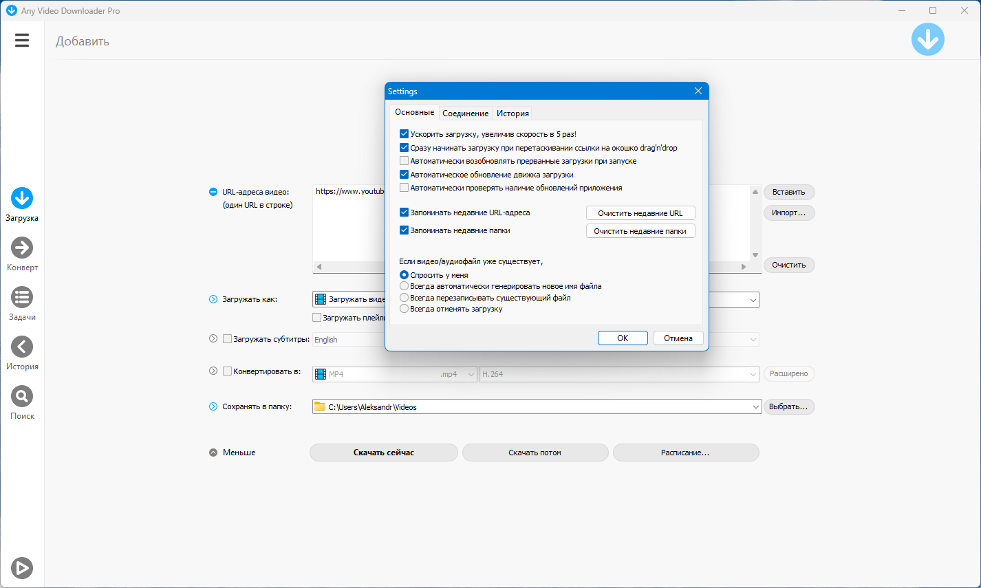Any Video Downloader Pro - это приложение для Windows, которое поможет вам загружать видео с YouTube, Facebook, Dailymotionи многих других сайтов обмена видео. Это ускоряет ваши загрузки до 5 раз. В программе есть возможность конвертировать видео и плеер для их просмотра.