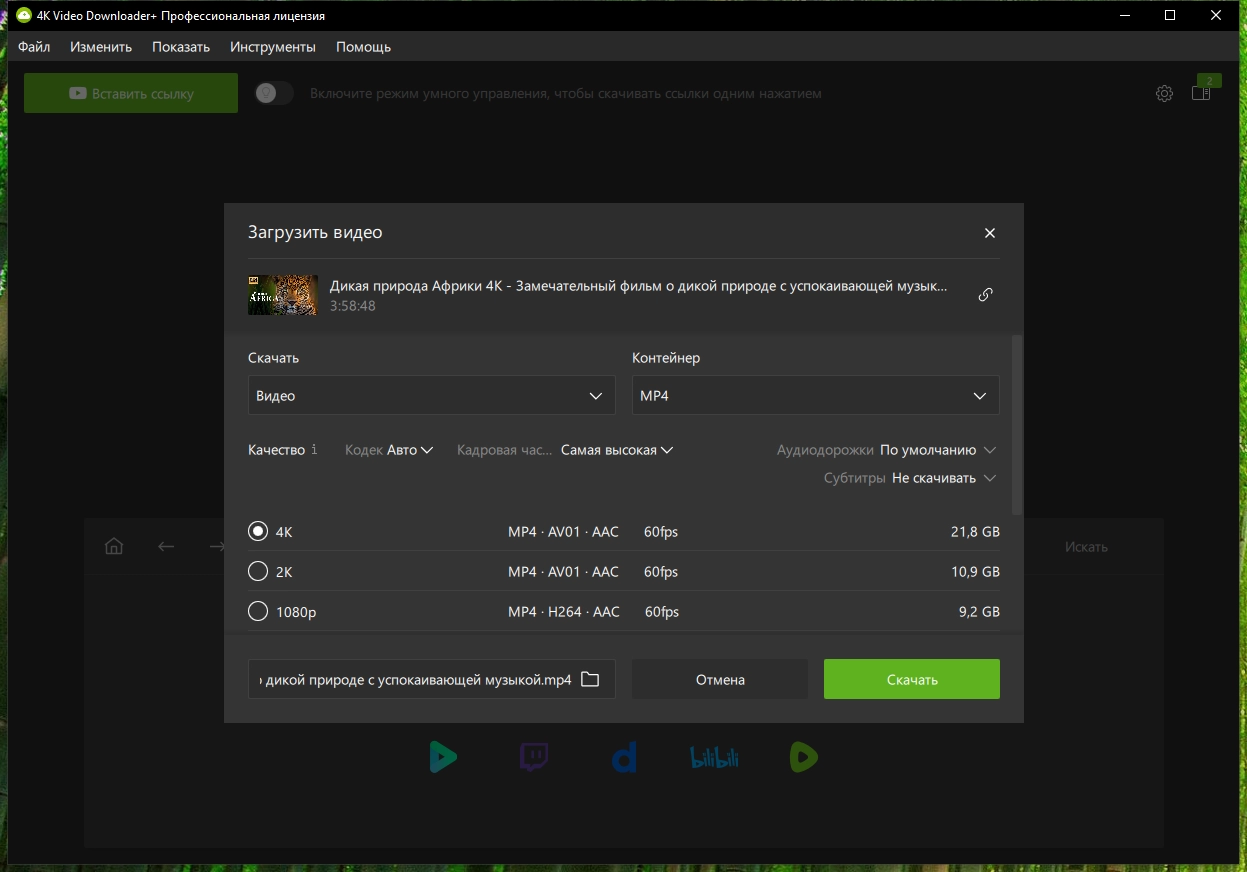 • 4K Video Downloader доступен на нескольких платформах. Скачайте его на ваш Windows, macOS или Linux.
