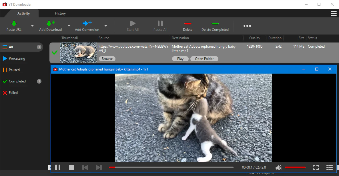 YT Downloader поддерживает одновременную загрузку. Он позволяет загружать более одного видео одновременно и в безопасное время.