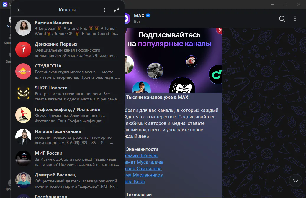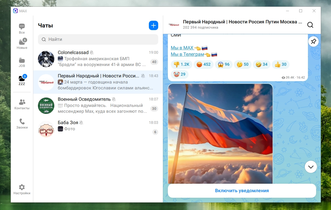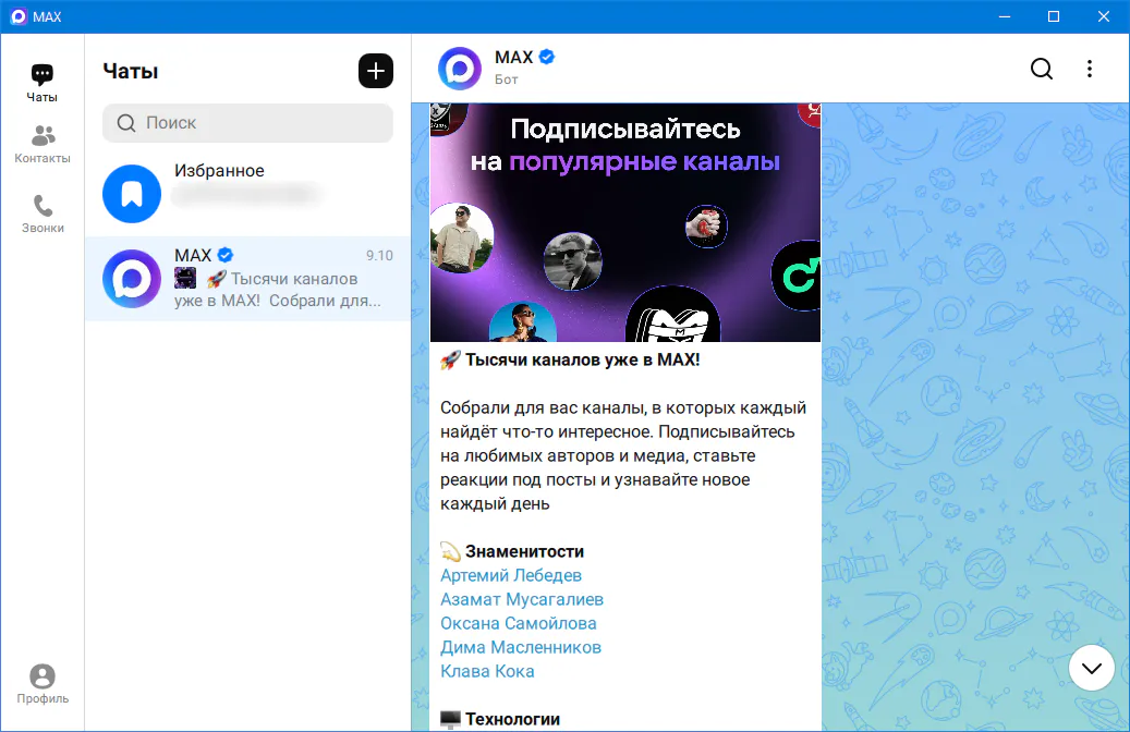 Быстрое и лёгкое приложение для общения и решения повседневных задач. Общайтесь в удовольствие благодаря высокому качеству связи и быстрому соединению даже в сетях со слабым сигналом. Анимированные стикеры, реакции в чатах, возможность отправки файлов до 4 ГБ – все необходимое для того, чтобы делиться настроением и важной информацией. В MAX можно войти сразу с нескольких устройств, используя свой основной номер мобильного телефона. Чаты и звонки будут синхронизироваться между устройствами.