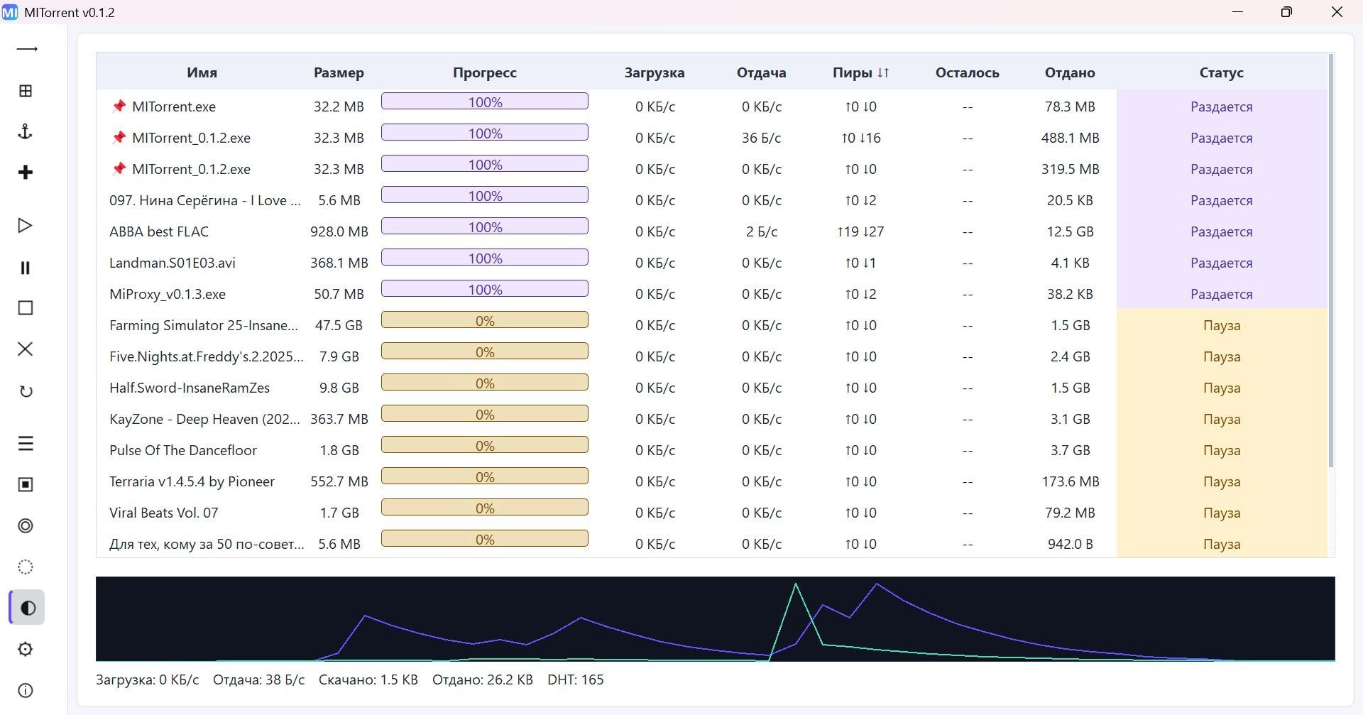 • MITorrent поддерживает параллельные загрузки и раздачи.