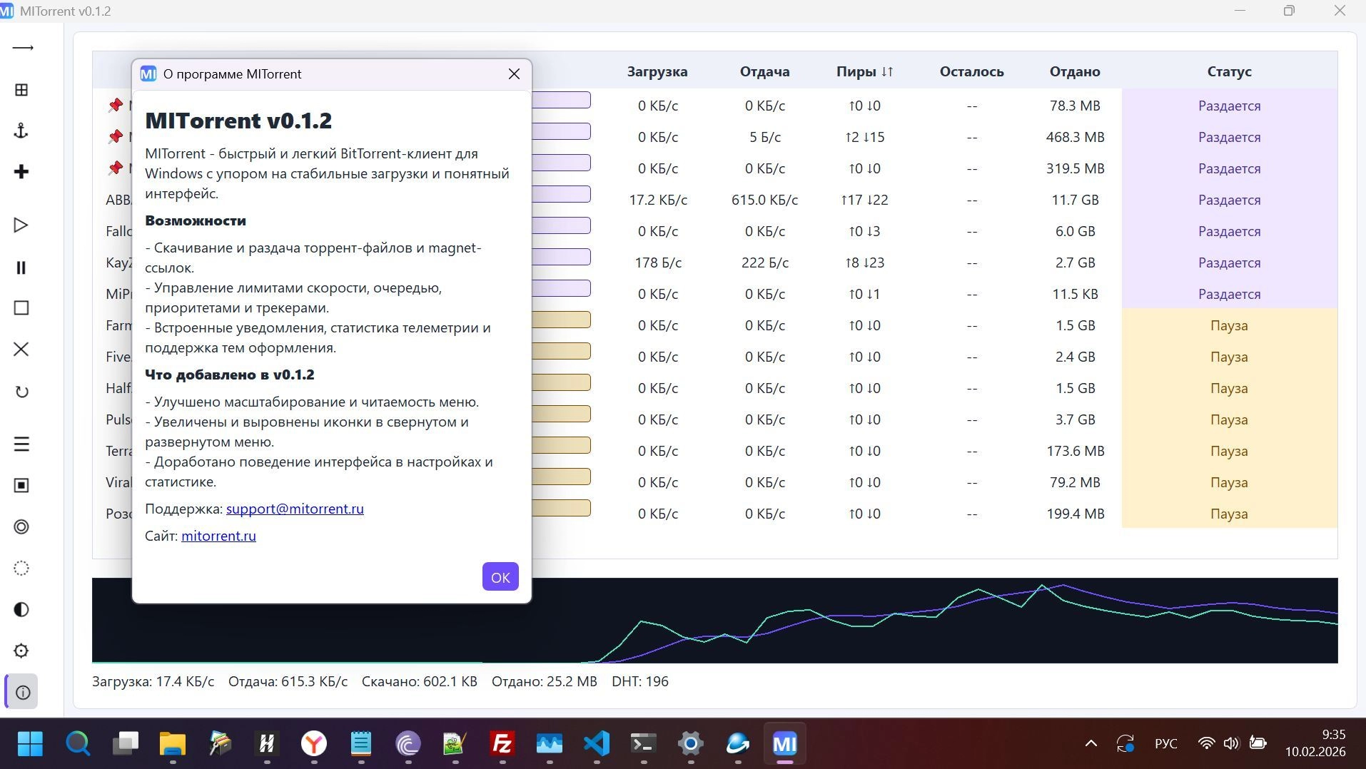 MITorrent Client — быстрый, удобный и компактный торрент-клиент для Windows.