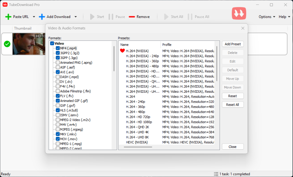• Готовые пресеты для всех выходных видео- и аудиоформатов.