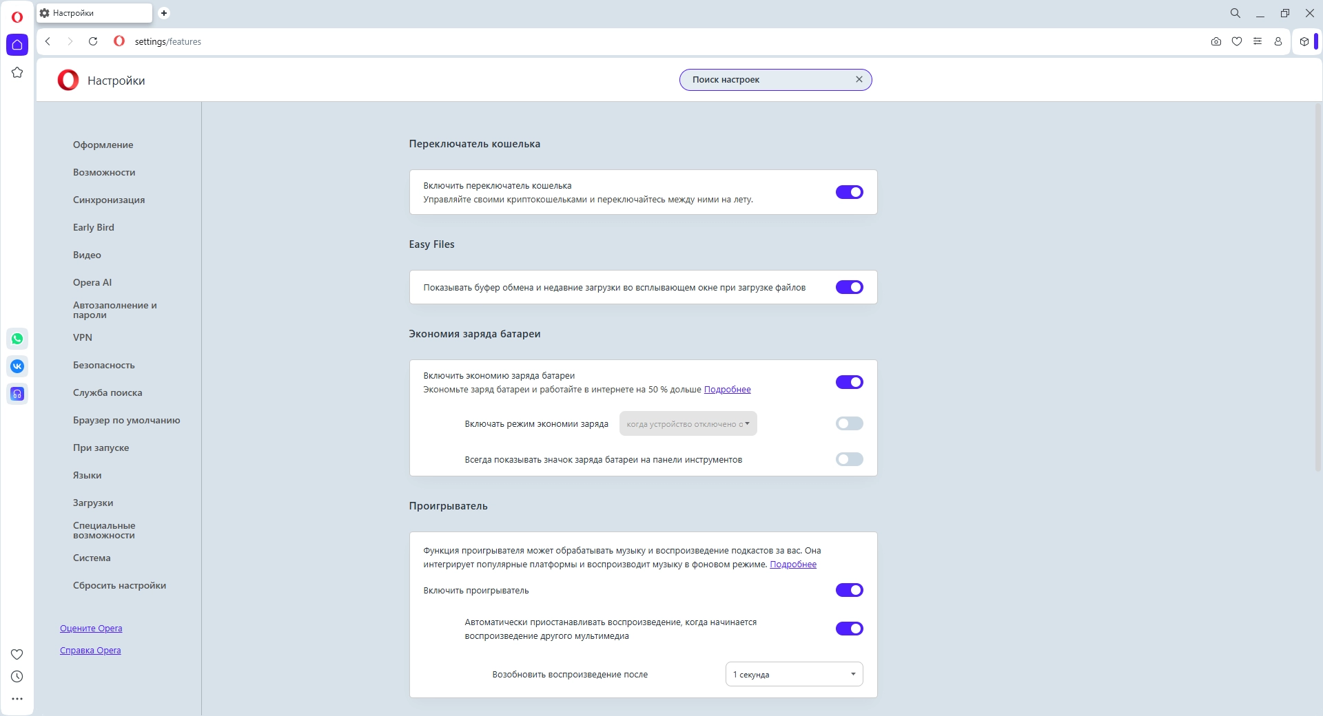 • Интерфейс Opera сочетает в себе точность и качество. Opera включает современный стиль и мощные опции, предоставляя вам полную свободу исследования просторов Интернета.