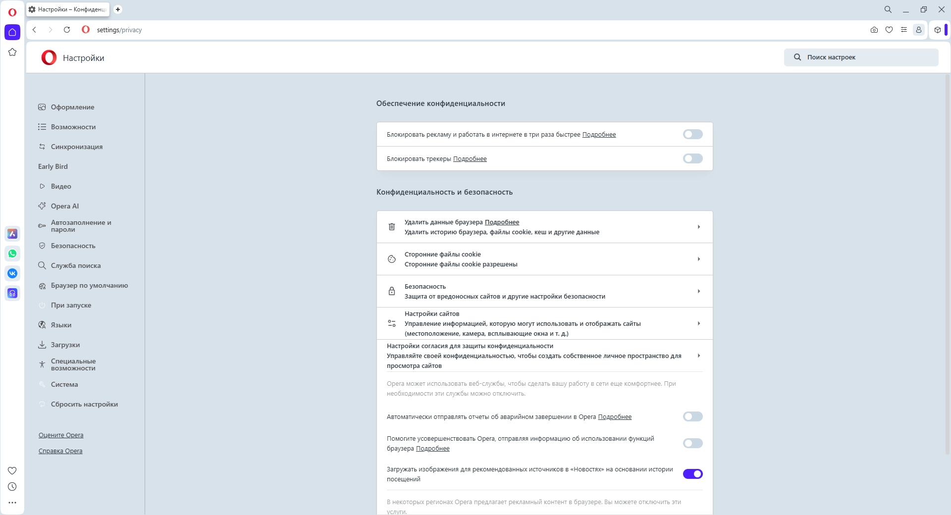 • Интерфейс Opera сочетает в себе точность и качество. Opera включает современный стиль и мощные опции, предоставляя вам полную свободу исследования просторов Интернета.