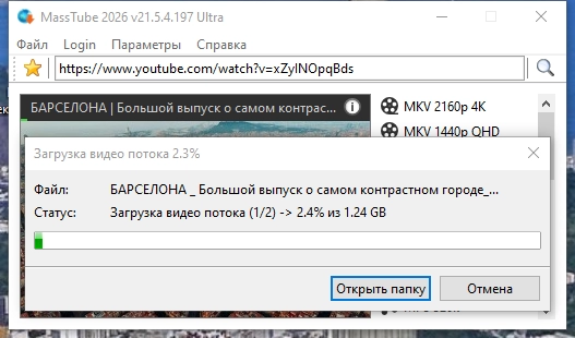 Скачивание видео с YouTube MassTube Ultra 21.5.4.197 by elchupacabra