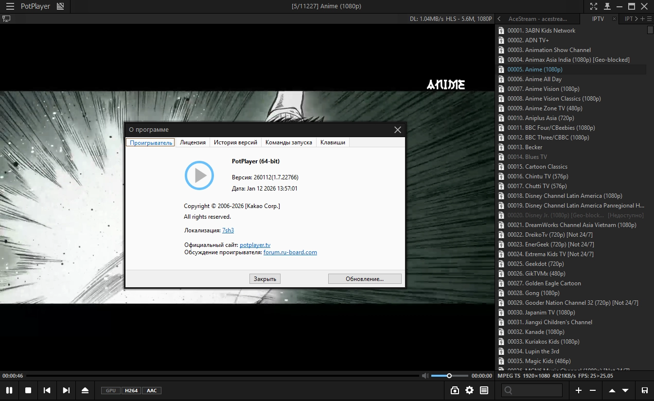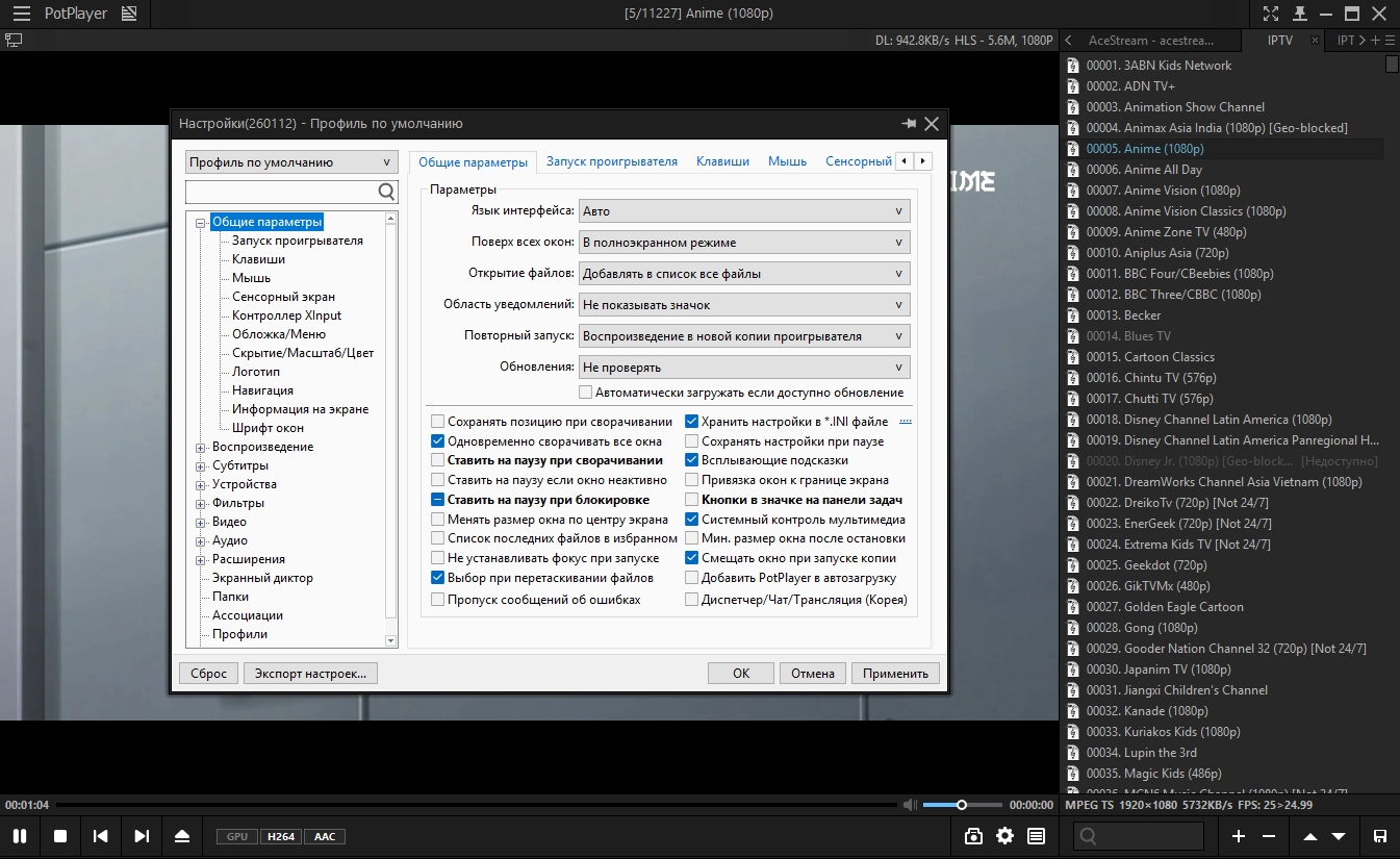 без рекламы и плеера, для просмотра Torrent TV в PotPlayer.