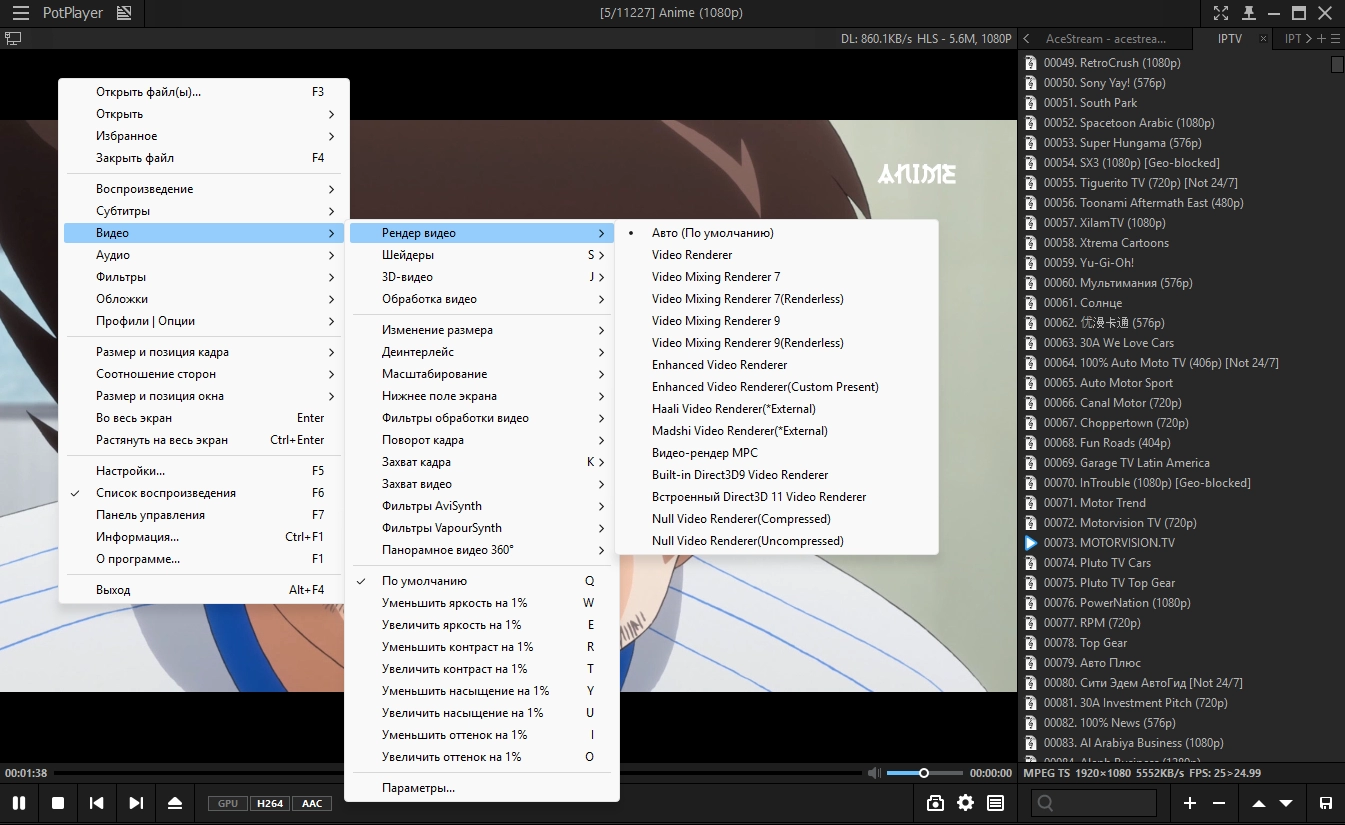 PotPlayer - мультимедийный плеер от авторов KMPlayer. Его отличают высокое качество воспроизведения, поддержка всех современных видео и аудиоформатов, а также наличие встроенных видеокодеков DXVA. Potplayer обладает современным дизайном, удобен в настройке, позволяет назначать и изменять горячие клавиши, записывать воспроизводимый звук в отдельный файл, подключать DSP-плагины, показывать субтитры, включать визуализацию при проигрывании аудиофайлов. Potplayer имеет большое количество настроек, которые могут значительно улучшить качество видео.