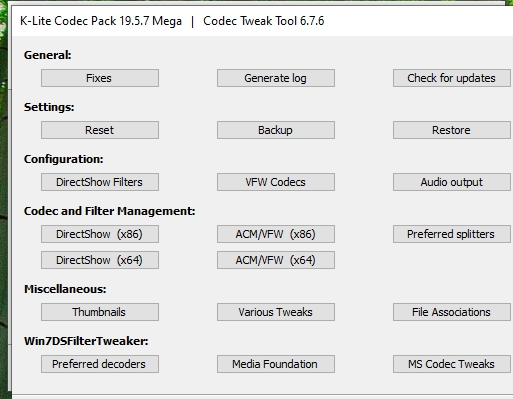• K-Lite Codec Pack 18.4.5 and newer (Basic/Standard/Full/Mega)