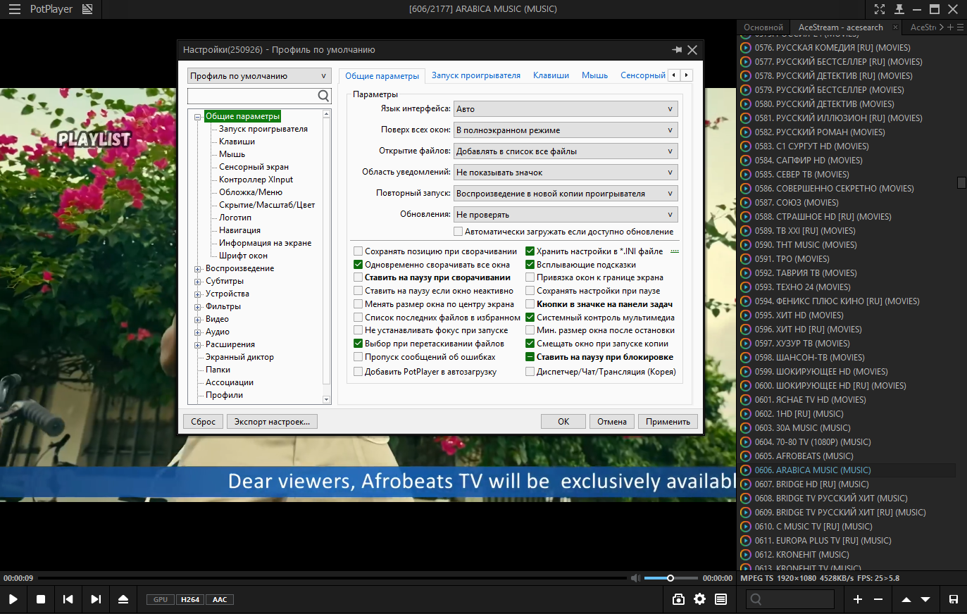 без рекламы и плеера, для просмотра Torrent TV в PotPlayer.