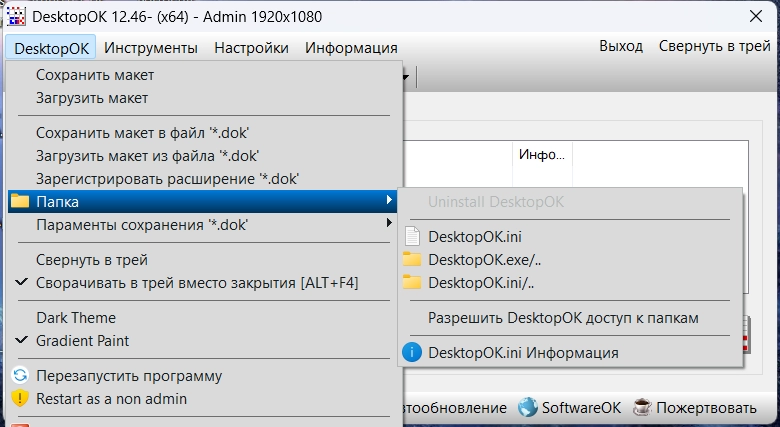 Сохранение местоположения иконок DesktopOK 12.46 + Portable