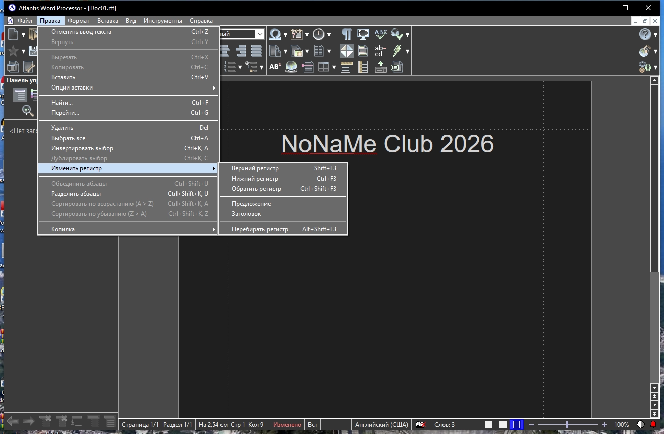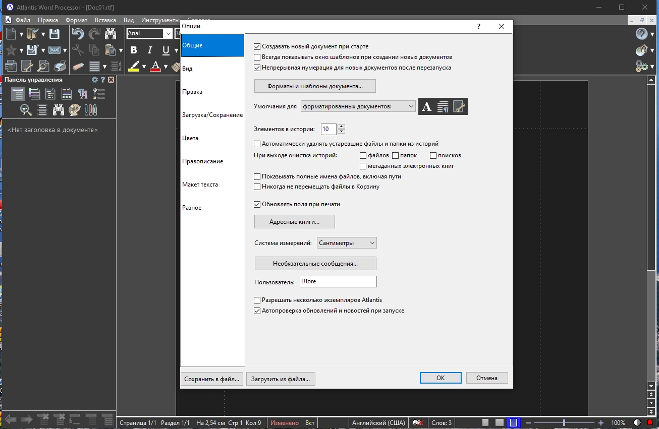 • Поддерживается работа с документами форматов RTF, MS Word, MS Write, TXT.