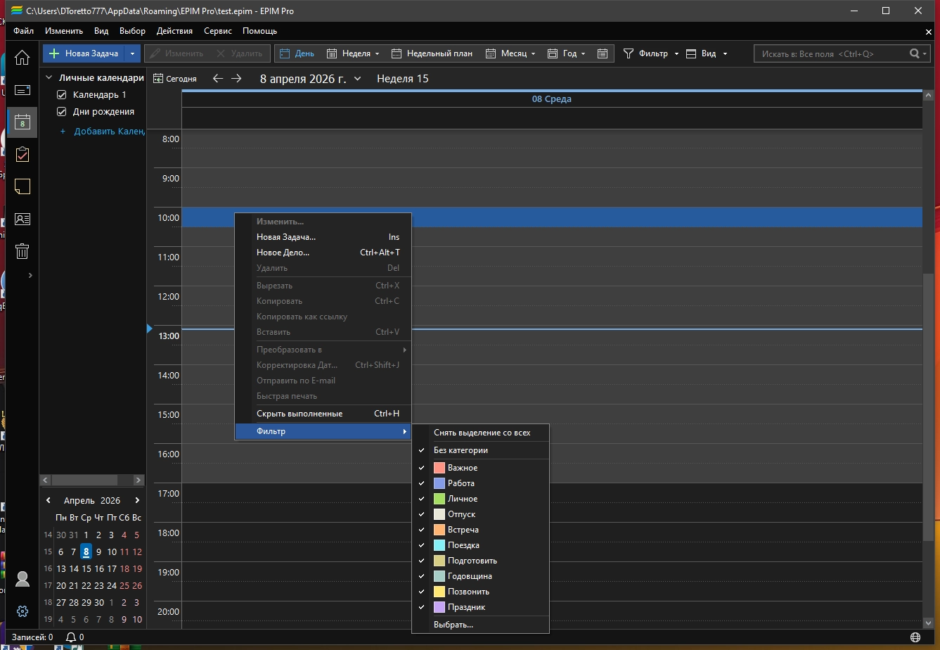За многие годы EssentialPIM для Windows эволюционировал в гибкий и чрезвычайно интуитивный инструмент, которым можно начать пользоваться за считанные минуты. Наличие переносной версии и широкие возможности синхронизации, импорта и экспорта предоставляют полный контроль над вашими данными.