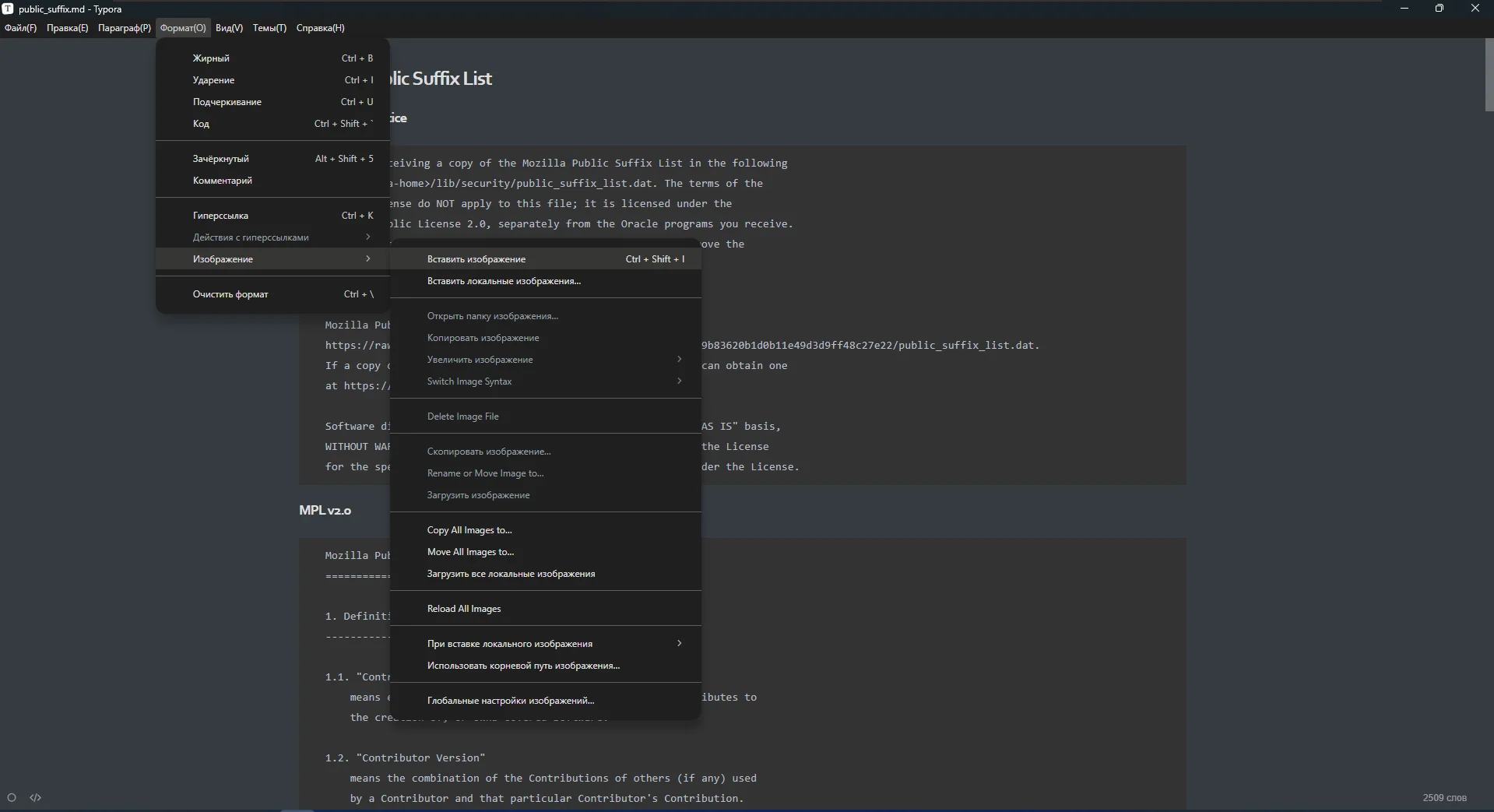 📸 Работа с изображениями — вставка, автообновление путей, предпросмотр прямо в тексте.
