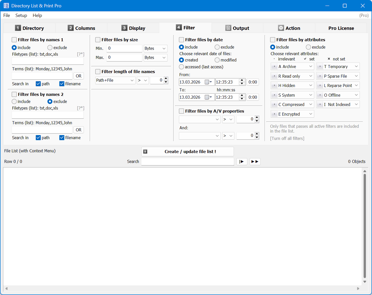Directory List & Print – менеджер каталогов, предназначенный для просмотра и печати содержимого папок или каталогов. Программа дает возможность выбрать нужные файлы или папки и печатать их во время просмотра деталей. Directory List & Print способен открывать список файлов и папок в документах Word и Excel, сохранять в виде текстовых файлов, PDF, HTML и XML-таблицах или копировать весь список файлов в буфер обмена и экспортировать практически в любую другую программу. Directory List & Print предлагает установить фильтрацию файлов по соответствующей дате, формате или другим атрибутам для просмотра исключительно нужных файлов. Программа позволяет копировать, удалять или перемещать каталог файлов без изменения созданной даты. Directory List & Print дает возможность извлекать метаданные с медиафайлов, документов и PDF-файлов, благодаря чему можно просматривать самую подробную информацию о файлах. Также программа поддерживает форматирование, фильтрации и ряд обычных функций для обработки каталогов.