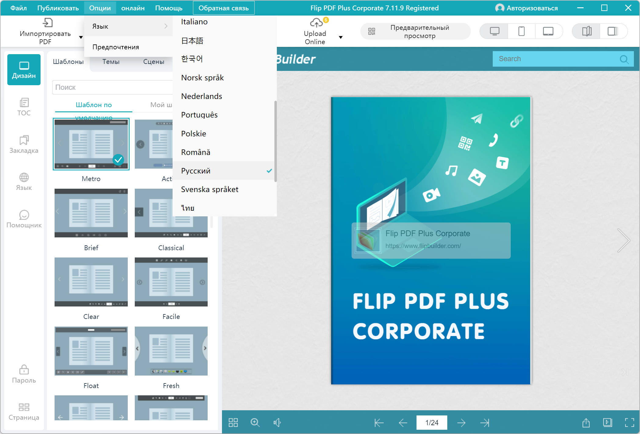 Flip PDF Plus Corporate - профессиональная версия нашей мощной программы Flip PDF с множеством функций. С помощью Flip PDF можно конвертировать обычный формат PDF в потрясающие буклеты с удивительной покадровой анимацией. Flip PDF предлагает быстрый и легкий способ конвертировать обычные PDF файлы в потрясающие буклеты с эффектом перелистывания страниц и изумительным звуком! Только представьте, теперь вы сможете создавать цифровые журналы и каталоги, похожие на настоящие книги, без специальных знаний программирования! Используя программу Flip PDF можно создать уникальный журнал или каталог, которые будут похожи на цифровые книги. В них можно также сочетать текст и различные изображения, как в стандартном документе. Создавая свой буклет, можно в дальнейшем отредактировать его и внести ещё больше ярких эффектов и изменений. Интерфейс программы очень обычный и позволяет проводить все настройки в два счёта.