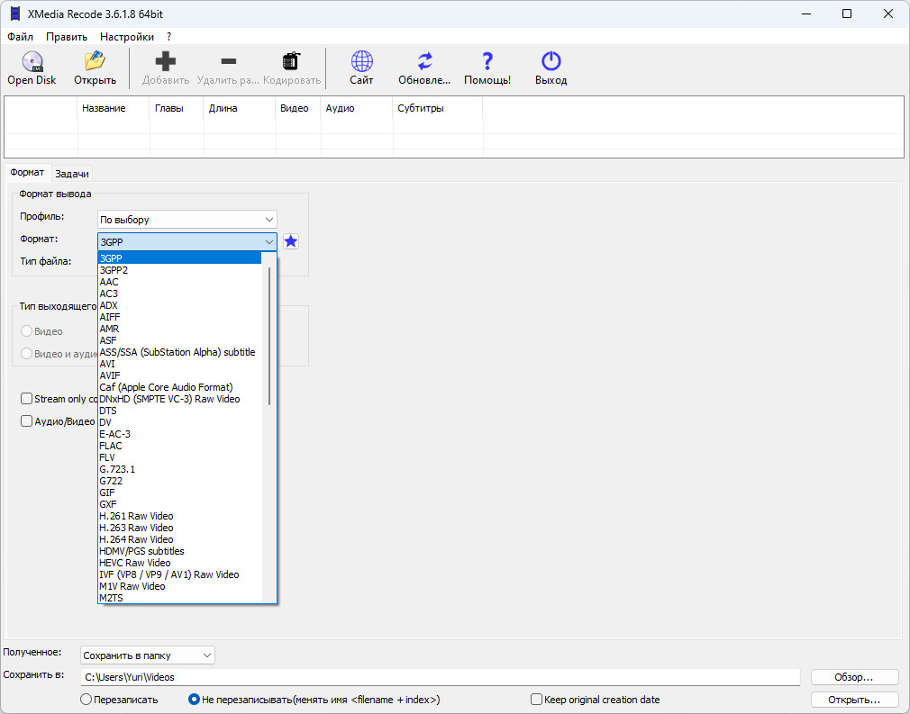 • XMedia Recode может конвертировать только незащищённые DVD-диски.