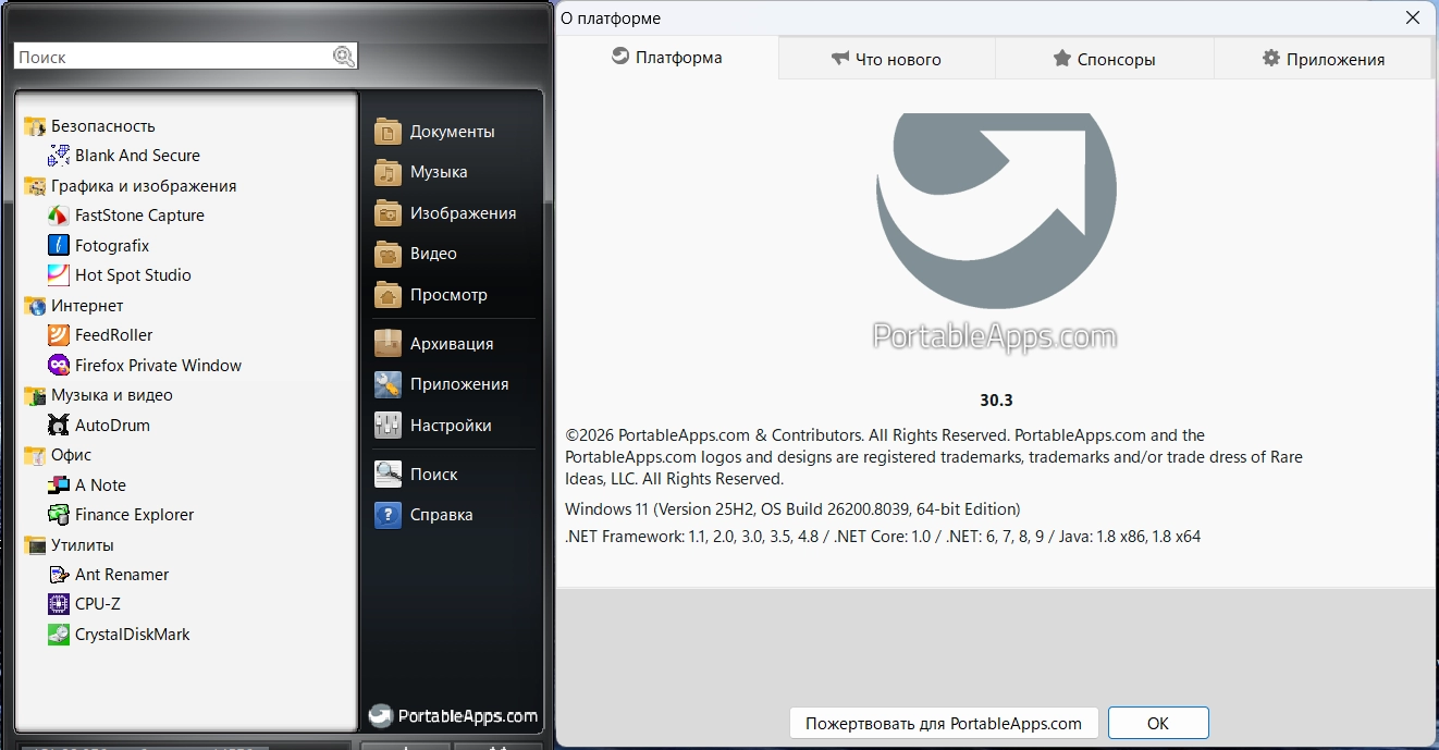 Оболочка для портативных программ PortableApps.com Platform 30.3