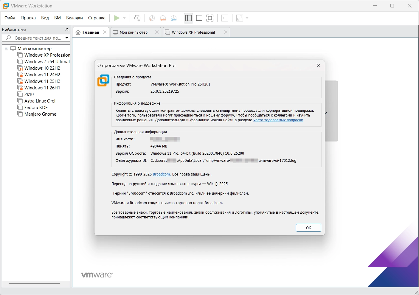 Виртуальный компьютер в системе VMware Workstation Pro 25H2u1 25.0.1.25219725 by KpoJIuK